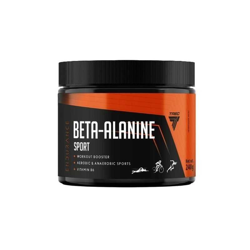 TREC NUTRITION Endurance Beta-Alanine Sport, Watermelon (240 g) – beta-alanino milteliai su vitaminu B6, sukurti ištvermei ir intensyvioms treniruotėms. Dienos porcija 4,5 g (6 samteliai) suteikia 2400 mg beta-alanino ir 0,21 mg vitamino B6 (15% RMV). Gaivus arbūzo skonis, patogu vartoti dalimis per dieną.