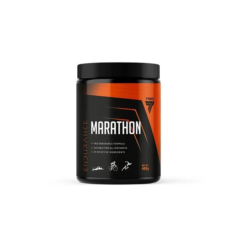 MARATHON yra daugiakomponentis preparatas, palaikantis ištvermę. Jis sudėtyje turi kreatiną, kuris didina fizinį pajėgumą atliekant pakartotinius trumpalaikius, intensyvius pratimus. Naudingas poveikis pasiekiamas vartojant 3 g kreatino per parą. MARATHON sudėtyje yra magnio, kalio ir kalcio, kurie padeda tinkamai veikti raumenims. Be to, MARATHON sudėtyje yra taurino, L-karnitino ir B grupės vitaminų komplekso, įskaitant vitaminus B6, B12, niaciną ir riboflaviną, kurie padeda sumažinti nuovargį ir išsekimą. MARATHON rekomenduojamas ištvermės sportininkams.