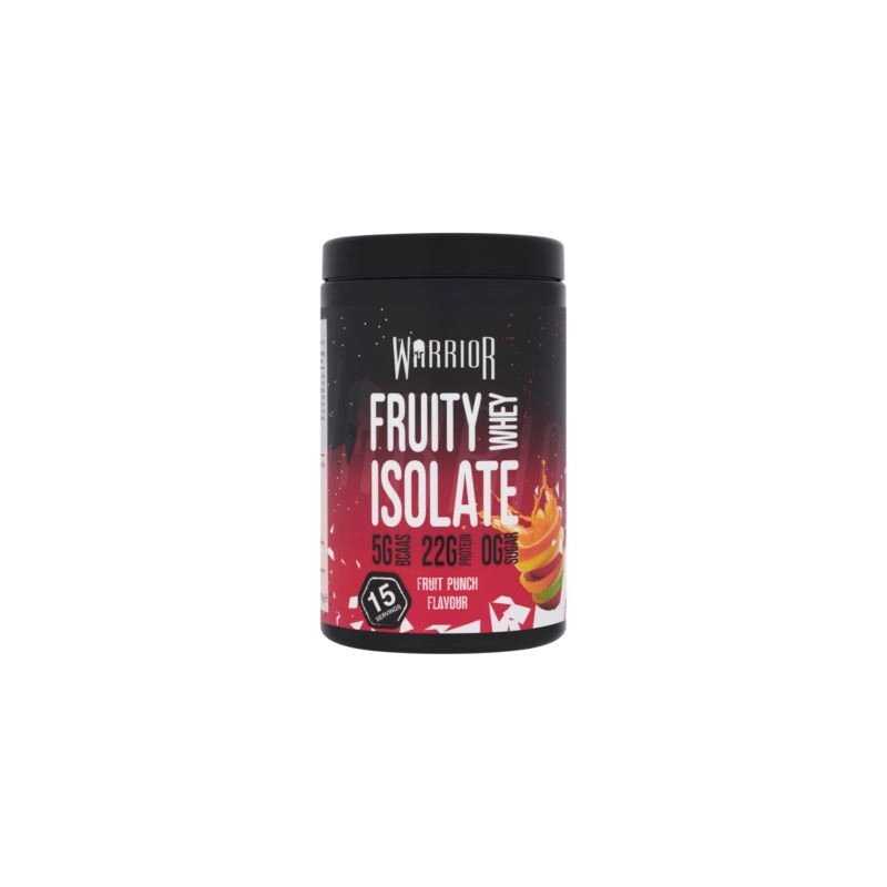 WARRIOR Fruity Whey Isolate – gaivaus vaisinio skonio išrūgų baltymų izoliatas (WPI), sukurtas greitam pasisavinimui ir lengvam gėrimui „be sunkumo jausmo“. 1 porcija (25 g) suteikia 22,56 g baltymų, tik 94 kcal, beveik 0 g cukraus (0,10 g) ir 0,25 g riebalų. Puikiai tinka po treniruotės, ryte ar tarp valgymų, kai reikia papildytibaltymų kiekį.