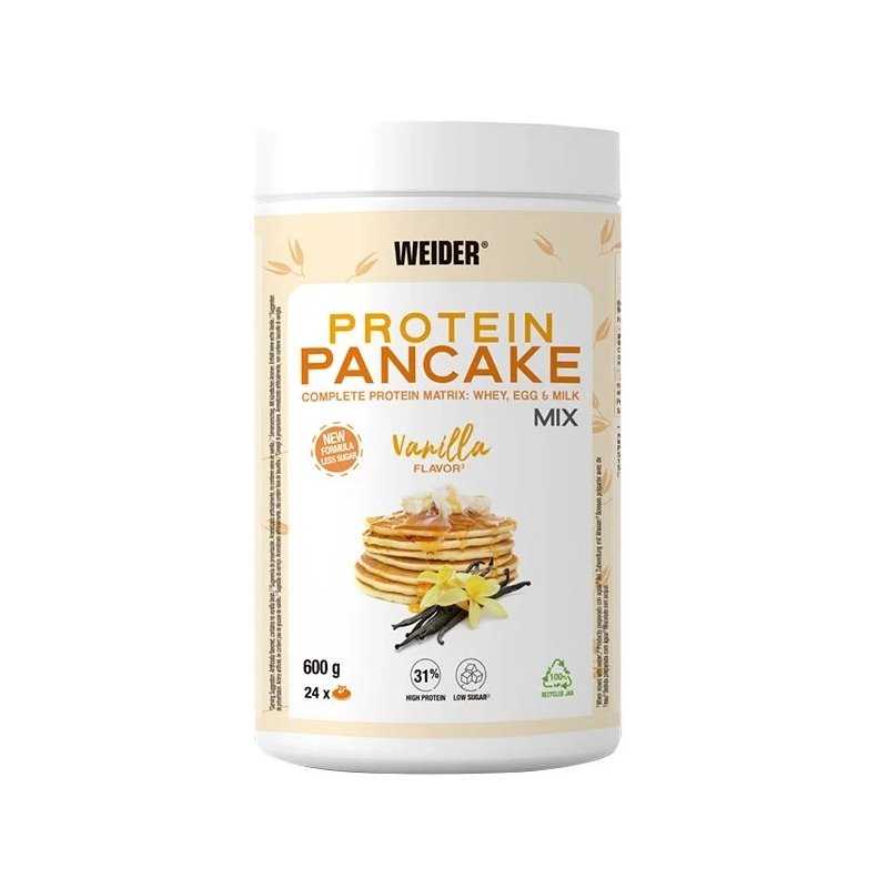 WEIDER Protein Pancake Mix, Vanilla (600 g) – baltyminis avižinių blynų mišinys su vanilės skoniu, skirtas greitiems, skaniems ir maistingiems pusryčiams ar užkandžiui. 1 porcija (50 g / 2 kaušeliai) suteikia 16 g baltymų ir 199 kcal, o 1 porcija = 2 blynai. Puikiai tinka, kai norisi „fit“ blynų be ilgo gaminimo – sumaišai, kepi ir valgai.