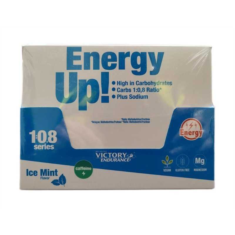 Victory Endurance Energy Up! + Caffeine (Cola), 24 x 40 g – angliavandenių gelis su kofeinu, skirtas energijai treniruotės ar varžybų metu. 1 gelis (40 g) suteikia 25 g angliavandenių (100 kcal), 60 mg kofeino iš guaranos ir 100 mg natrio elektrolitų balansui. Tinka bėgimui, dviračiui, triatlonui ir ištvermės sportui.Vartojimas: po 1 gelį kas 30–45 min. sportuojant, rekomenduojama užgerti vandeniu.