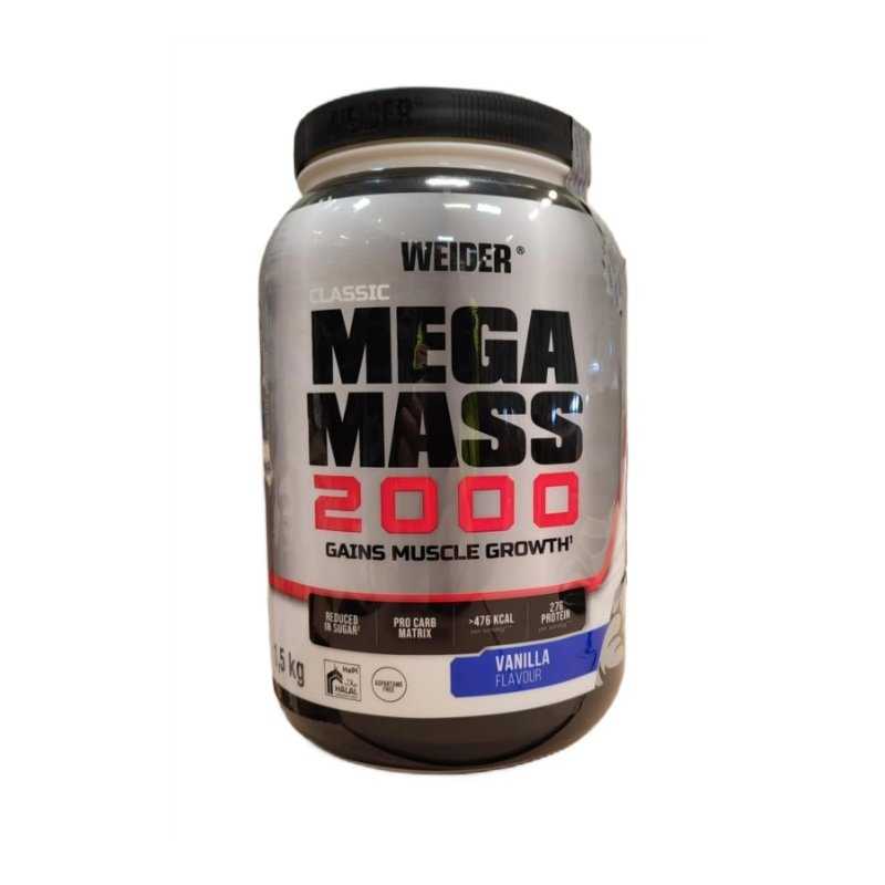 Weider Mega Mass 2000 – daug metų vertinamas gaineris, sukurtas tada, kai vien maistu sunku surinkti reikiamą kalorijų perteklių. Pagrindą sudaro angliavandenių mišinys ir kelių šaltinių baltymų kompleksas (išrūgų baltymai + pieno baltymai + žirnių baltymai + kiaušinio baltymas), papildytas vitaminais ir mineralais.