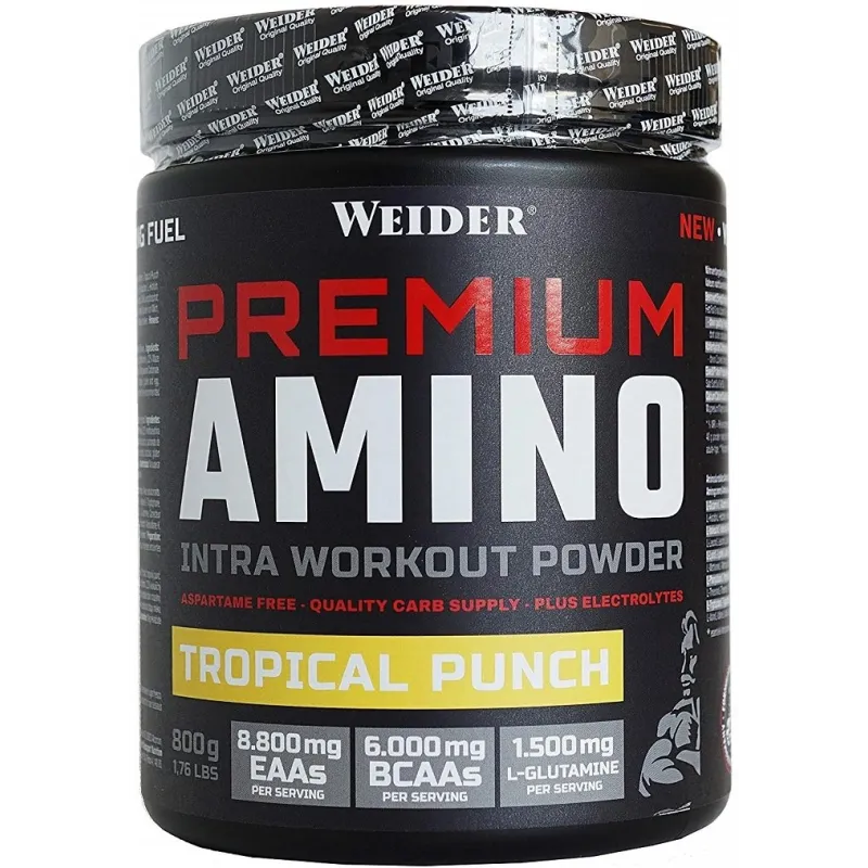 Milteliai gėrimui maišyti su aminorūgštimis, maltodekstrinais (bulvių, kukurūzų, vaškinio kukurūzų) ir elektrolitais. Su saldikliais. Apelsino arba tropinių vaisių skonio.